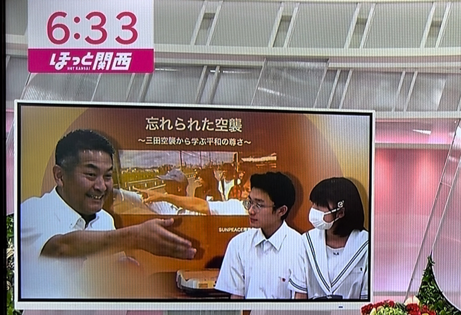 8月8日、NHK「リブラブひょうご」、8月13日「ほっと関西」で、私たちが続けてきた「三田空襲」の記憶を次世代に引き継ぐ活動を紹介していただきました。番組をご覧くださった皆さん、ありがとうございました。