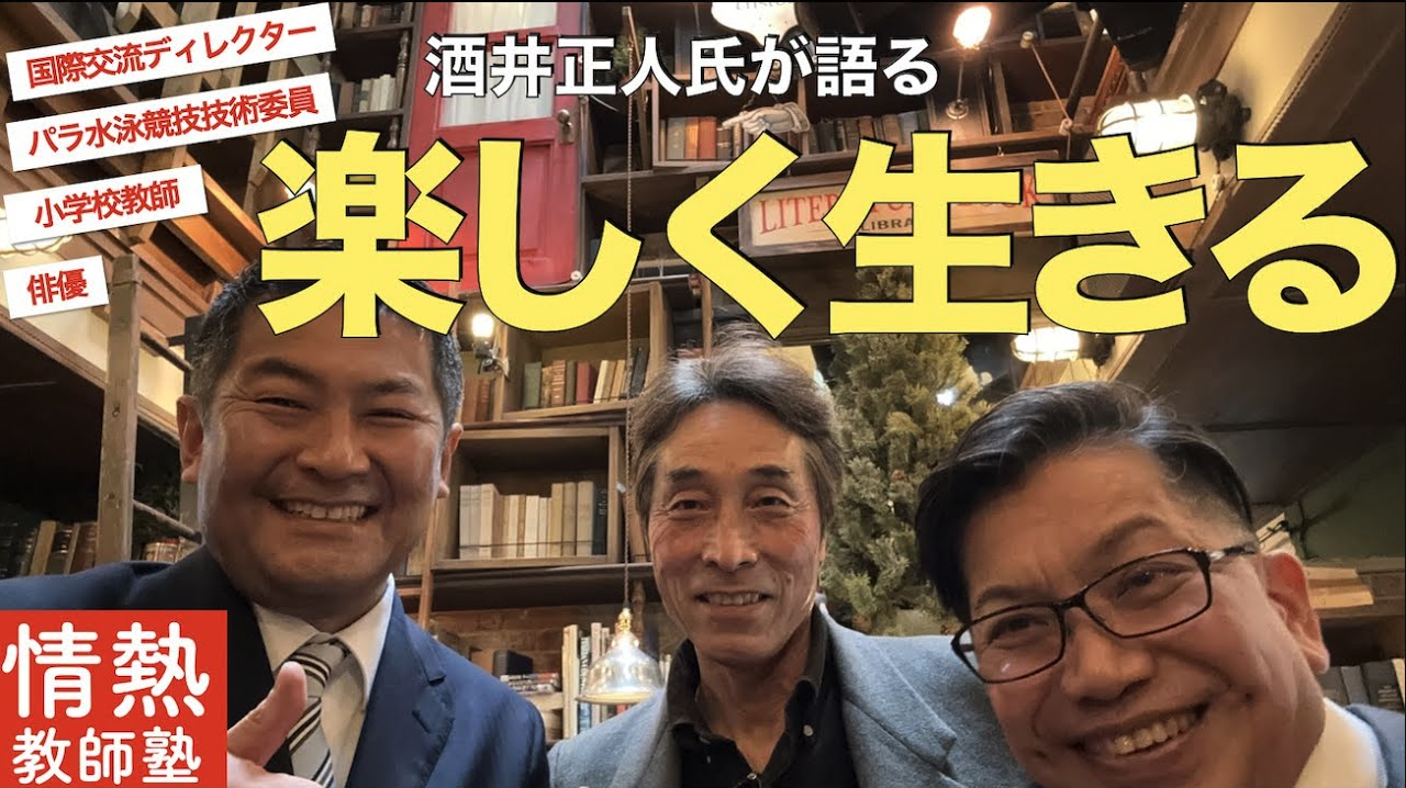 情熱教師塾にスペシャルゲストとして登場いただいた酒井正人先生。収録は、なんとキングコングの西野さんのご自宅という特別な空間で行われました。小・中・高校の教員、パラ水泳競技技術委員、国際交流ディレクター、俳優…と多方面で活躍される酒井先生の原点と、変わらぬ信念に迫ります。